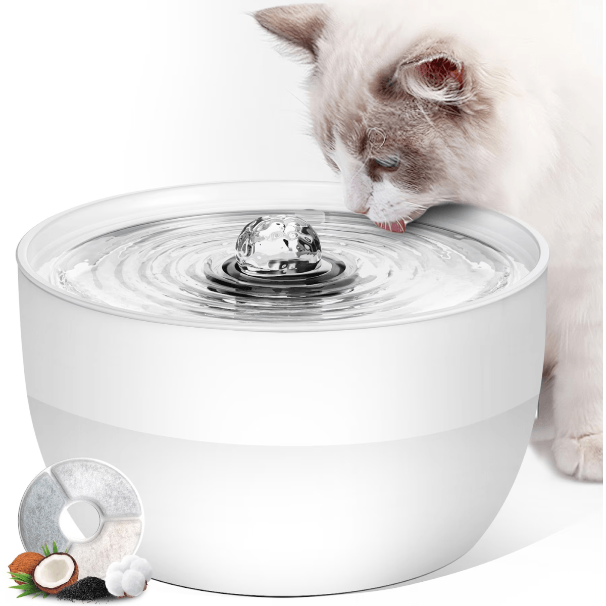 Įmontuota keturių sluoksnių profesionali filtravimo sistema: nerūdijančio plieno tinklelis, nedengtas audinys, jonų mainų derva ir aktyvioji anglis palaipsniui išvalo plaukus, dulkes ir kvapus, taip pat suminkština vandenį ir sumažina šlapimo takų ligų riziką augintiniui. Naudojama pakartotinai naudojama ekologiška filtro dėžutė – pakanka pakeisti tik vidinį elementą, todėl mažiau plastiko atliekų ir mažesnės ilgalaikės išlaidos.